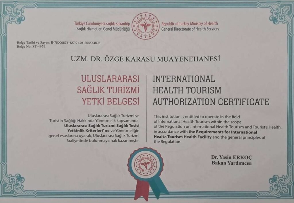 Uluslararası Sağlık Turizmi Yetki Belgesi, Türkiye’de sağlık turizmi faaliyetlerinde bulunmak isteyen hastaneler, klinikler, poliklinikler ve aracı kurumlar için T.C. Sağlık Bakanlığı tarafından verilen resmi bir belgedir.